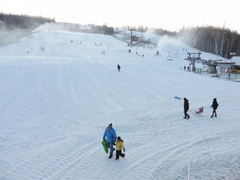 Ratraki rozprowadziły część śniegu i zaczyna już stok przypominać gotowy do sezonu. Temperatury bardzo niskie. W dzień od minus 9 do minus 12 stopni Celsjusza a w nocy dochodziło do ok. minus 18 stopni Celsjusza. Organizatorzy do tej pory się spisują na medal. Ciekawe czy uda się uruchomić stok przed planowaną datą 06.01.2015 ?